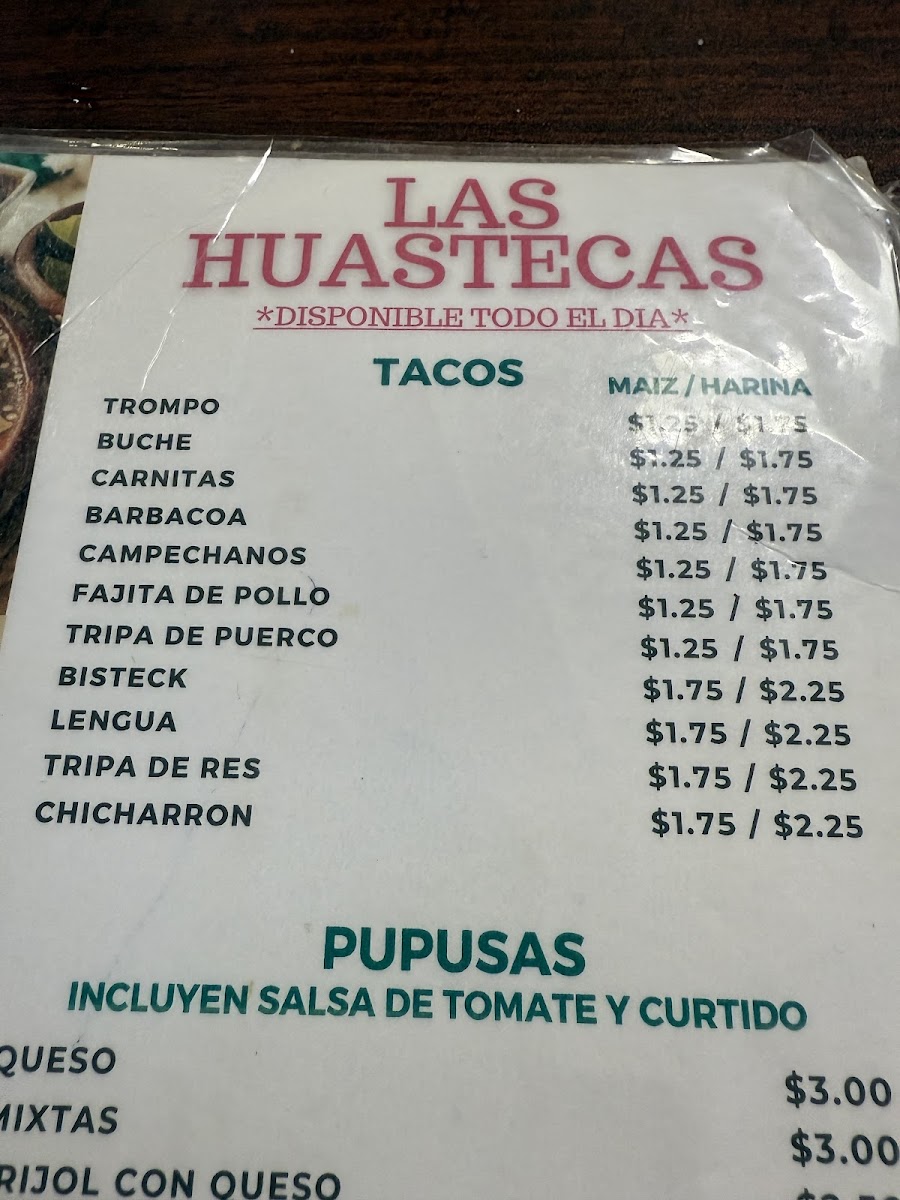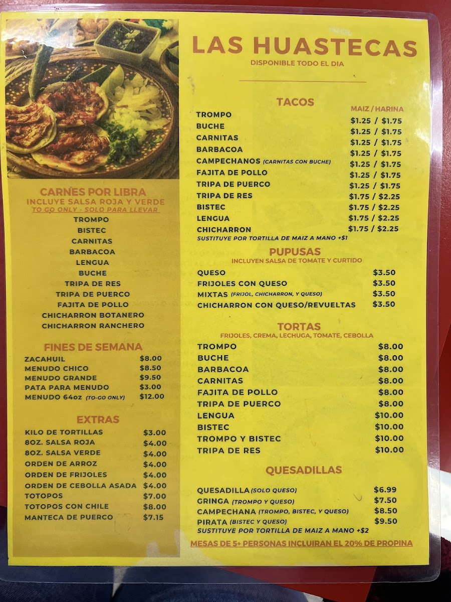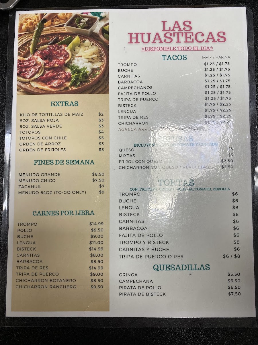 Las Huastecas Menu