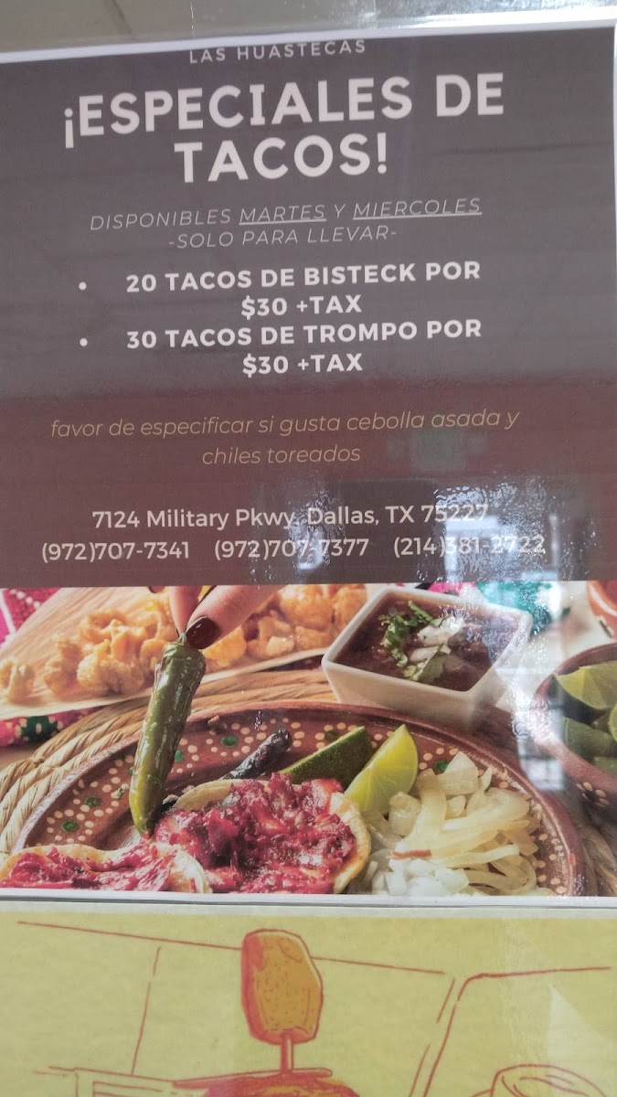 Las Huastecas offers a menu that captures the comforting and vibrant essence of traditional Mexican dining. The selection ranges from hearty plates and savory tacos to familiar comfort dishes like menudo and enchiladas, all served in a casual, welcoming setting. Whether you're stopping by for a satisfying breakfast with a Barbacoa plate topped with eggs any style or enjoying a casual lunch of Trompo and Barbacoa tacos, the menu is designed for easy, flavorful enjoyment throughout the day.